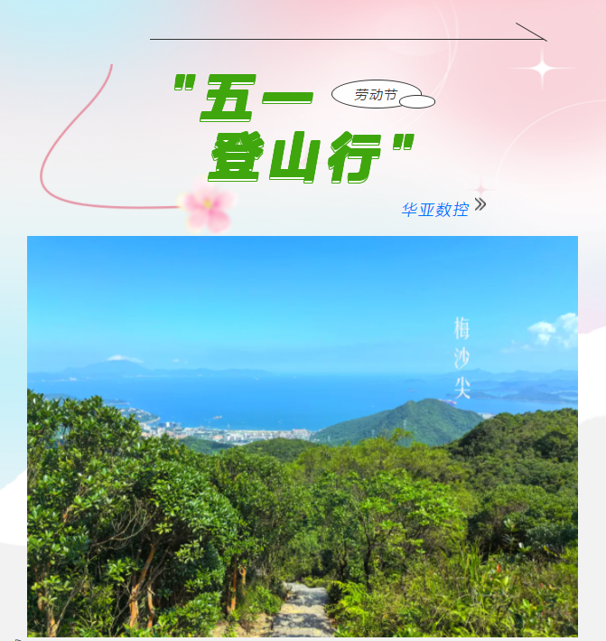 五月,是揮灑汗水的季節(jié),更是致敬奮斗者的時(shí)節(jié)。在五一勞動節(jié)來臨之際,華亞數(shù)控積極踐行企業(yè)文化,工會組織假日期間未回家的員工開展了一場別開生面的登山活動,“茶溪谷-梅沙尖-大華興寺”徒步之旅。以一場充滿激情與挑戰(zhàn)的戶外之旅,展現(xiàn)團(tuán)隊(duì)風(fēng)采,傳承勞動精神。