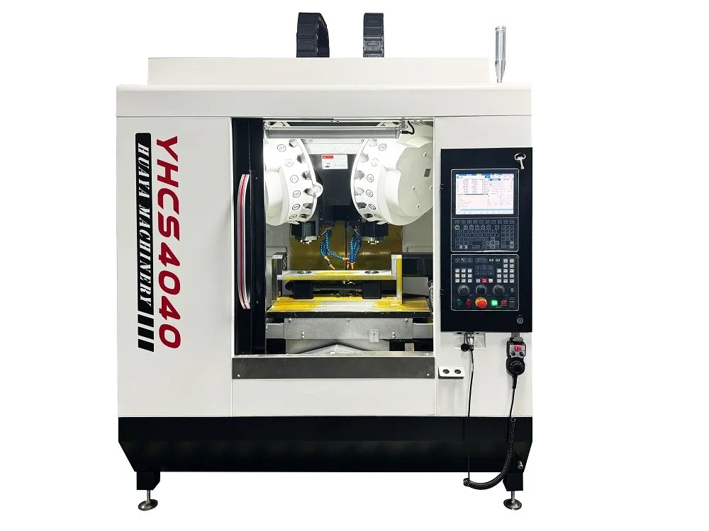 2、雙頭雙五軸五聯(lián)動(dòng)機(jī)YHCS-4040,憑借其高精度、高效率的加工性能,在航空航天、汽車制造等高端領(lǐng)域展現(xiàn)出強(qiáng)大的應(yīng)用潛力。