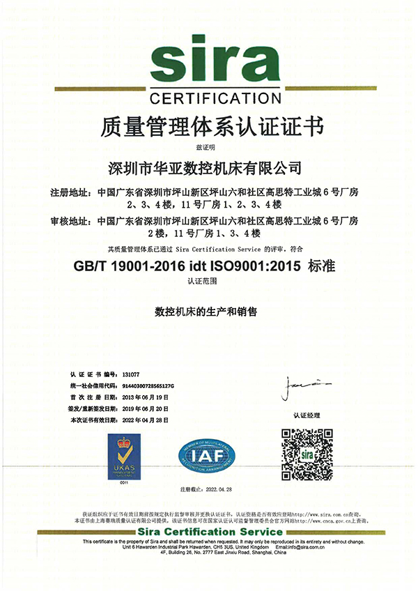 • 華亞數(shù)控質(zhì)量管理體系認(rèn)證證書ISO9001:2015